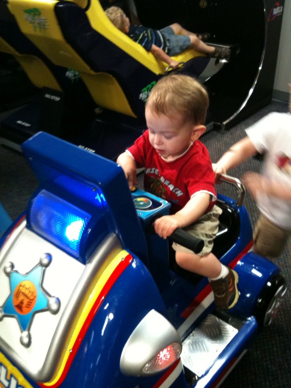 I'm not sure what Chuck E Cheese puts in their pizza but Andrew and James both ate 3 pieces!